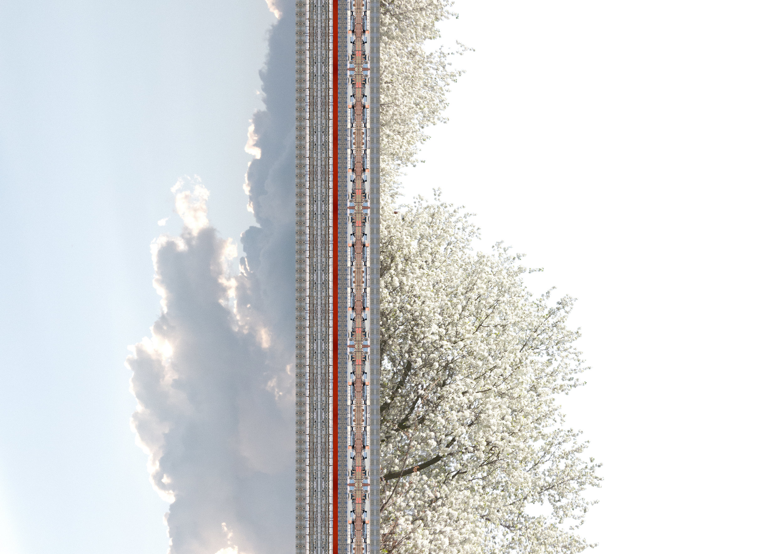 Using a Canon PowerShot I capture “snapshots” of my travels. I look for shapes in architecture and nature that I can combine into larger, cohesive abstract images. The process of creating my art involves putting two complementary images together to create a sense of balance. The core/middle piece is intended to vibrantly bind the two disparate aspects of the images. Upon establishing both the balance and the cohesiveness of the halves, I am able to manipulate the images to my satisfaction.